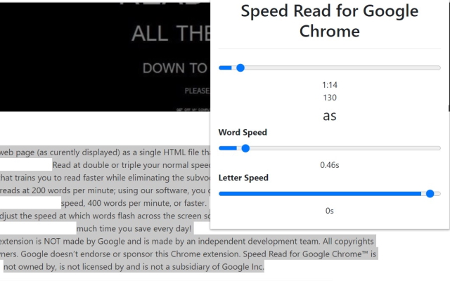 Our software allows you to adjust the speed at which words flash across the screen so that you naturally read faster. Think of how much time you save every day! Save hours each week by using our software extension to read any article you wish. Our software extension allows you to speed read at a pace you set and you can slowly boost your reading speed from 200 to 300 to 400 to 1000 words a minute at the end.